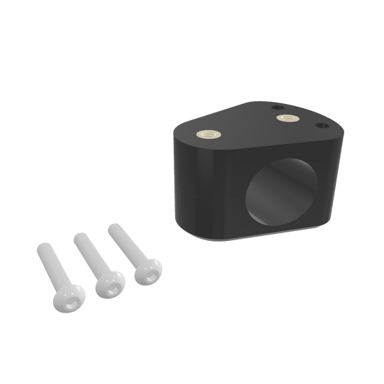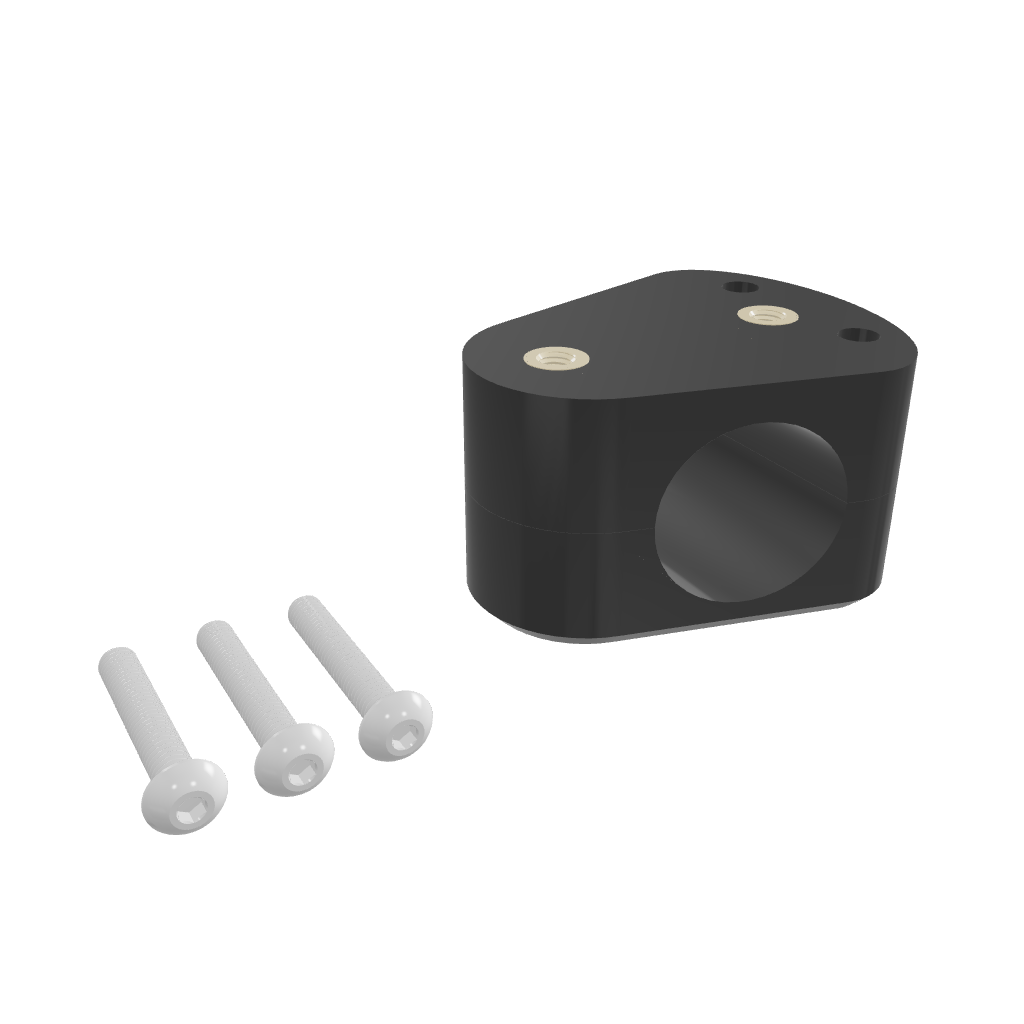 The bracket comes with three stainless steel screws (A4 - 316 Marine Grade), is 3D printed with UV resistant PETG plastic and contains four brass threaded inserts. Two bolts clamp the bracket to the aluminum tube of the seat and the other stainless bolt lets you pick from two inserts to bolt accessories to the front or sides of your seat.